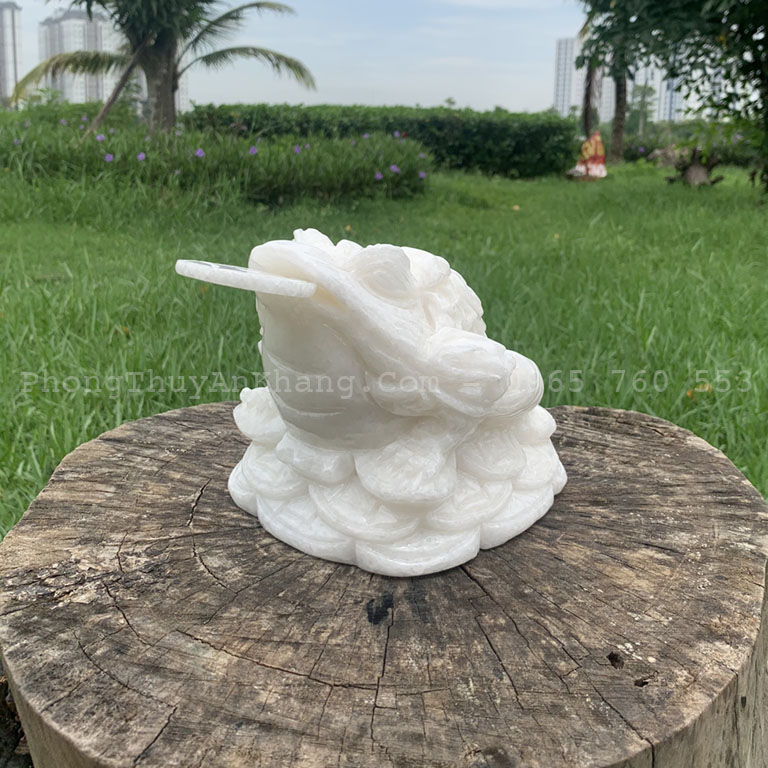 Cóc Ngậm Tiền (Thiềm Thừ) Đá Canxit Trắng, Size 15 CM